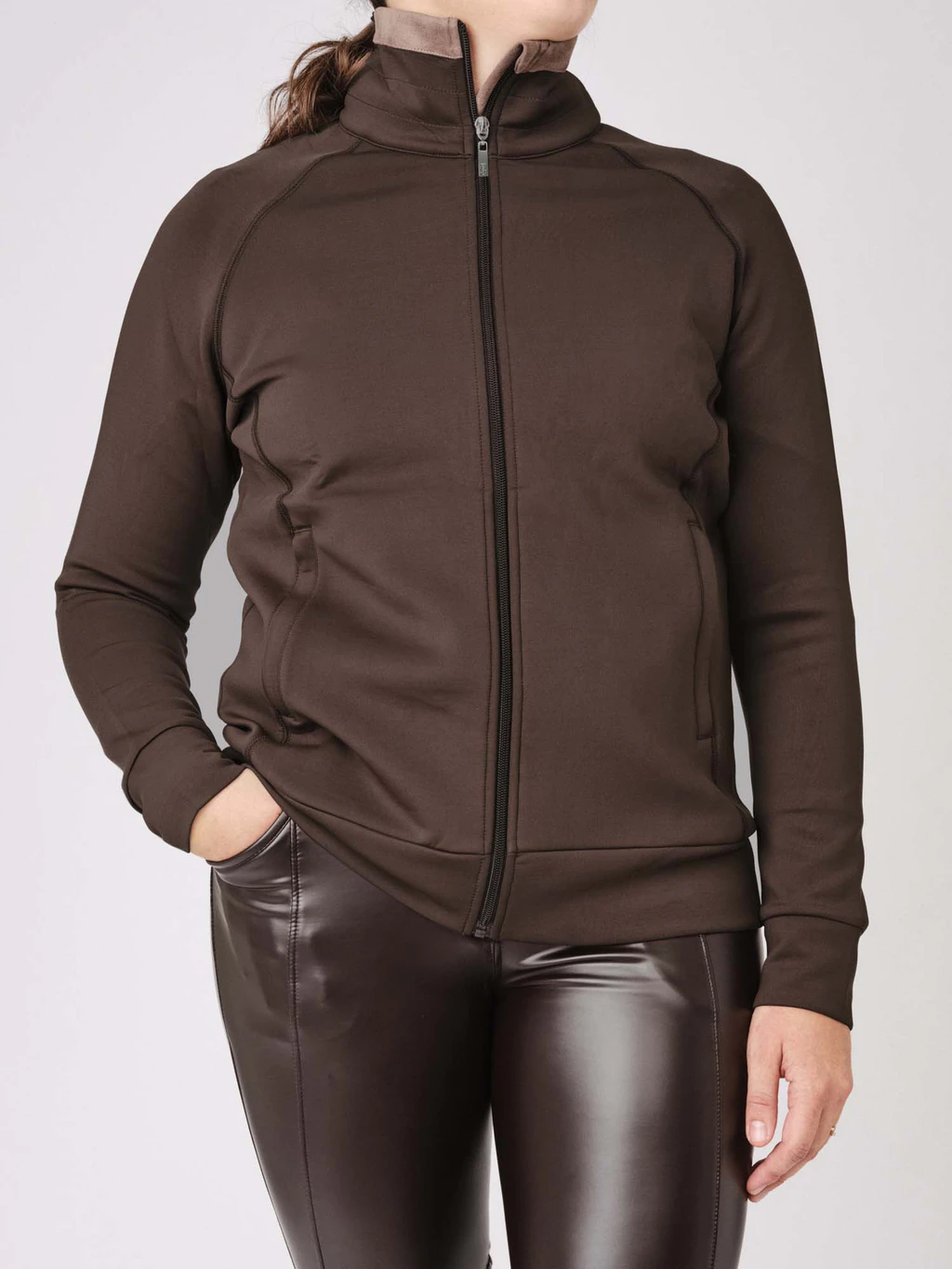 Bluza jest zapinana na dwukierunkowy zamek. Wykonana z grubego rozciągliwego w czterech kierunkach dżerseju. Materiał jest ciepły i perfekcyjnie miękki.