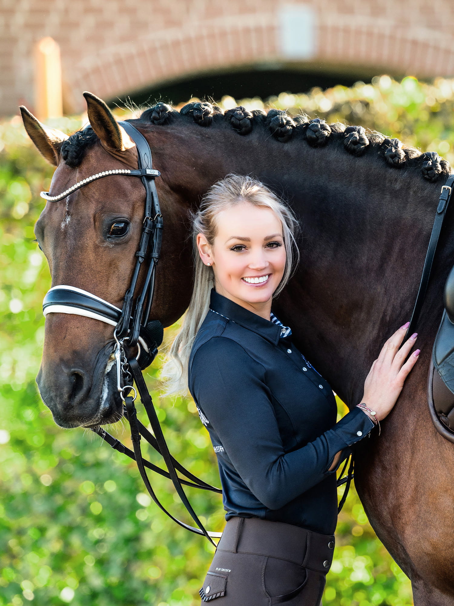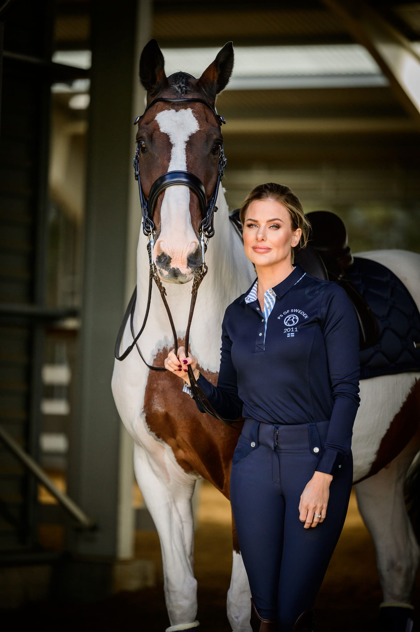 Wykonana z dbałością o każdy detal – ma wyhaftowane logo PS of Sweden z przodu po lewej stronie, wykończenia kołnierzyka i rękawów w biało-niebieskie paski. Z tyły wyhaftowane jest motto: "The Equestrian field is my habitat. Delikatne wzory w podkowy sprawiają, że jest naprawdę wyjątkowa.