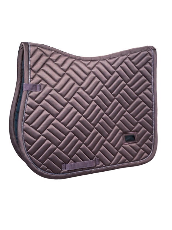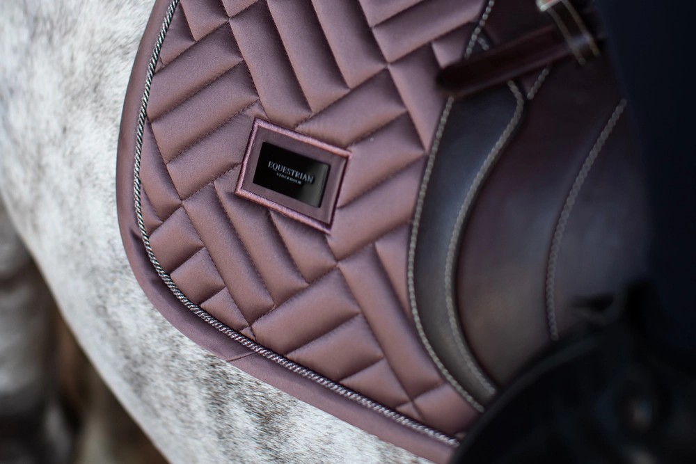 Czaprak skokowy Amaranth wyróżnia się nie tylko nowym wzorem pikowania, ale też pięknym kolorem, który jest połączeniem brązu z odrobina fioletu. Lamówka jest w tym samym kolorze a dodatkowo czaprak jest ozdobiony srebrnym sznurkiem. Czaprak po obu stronach ma chromowana plakietkę Equestrian Stockholm. Wykonany z błyszczącego, odpornego na zabrudzenia materiału, który dobrze oddycha i sprawia, że Twój koń nie spoci się aż tak bardzo podczas treningu.
