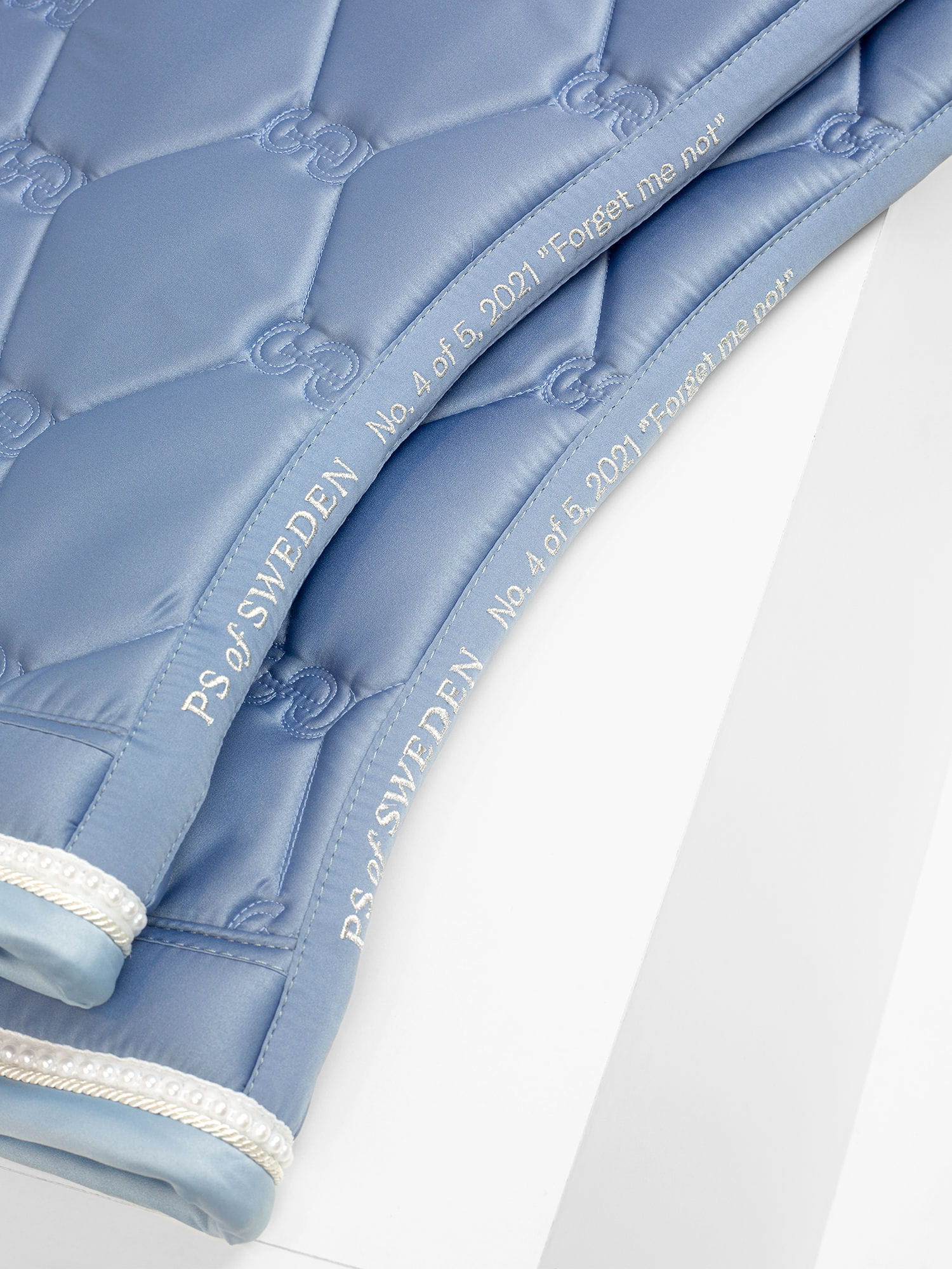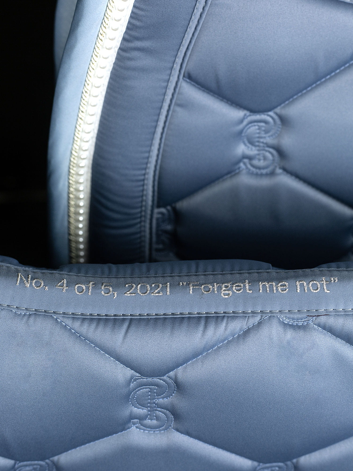 Czaprak ma na grzbiecie wyhaftowany napis: Nr. 4 of 5 "Forget me not"