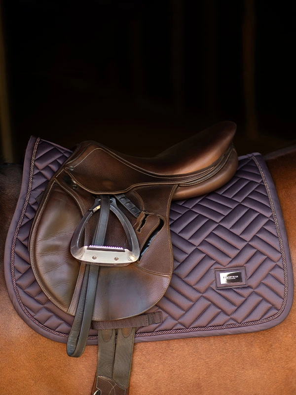 Czaprak skokowy Modern Moonless Night wyróżnia się nie tylko nowym wzorem pikowania, ale też pięknym kolorem, który jest połączeniem brązu z fioletem. Lamówka oraz ozdobny sznurek są w tym samym kolorze. Czaprak po obu stronach ma plakietkę Equestrian Stockholm w kolorze rose gold. Wykonany jest z błyszczącego, odpornego na zabrudzenia materiału, który dobrze oddycha i sprawia, że Twój koń nie spoci się aż tak bardzo podczas treningu.