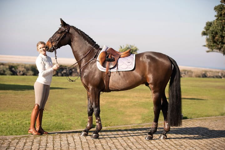 Czaprak PS of Sweden wykonany jest z połyskującego materiału, który jest odporny na wszelkiego rodzaju zabrudzenia. Wyhaftowane logo PSoS sprawia, że ten czaprak wygląda wyjątkowo.