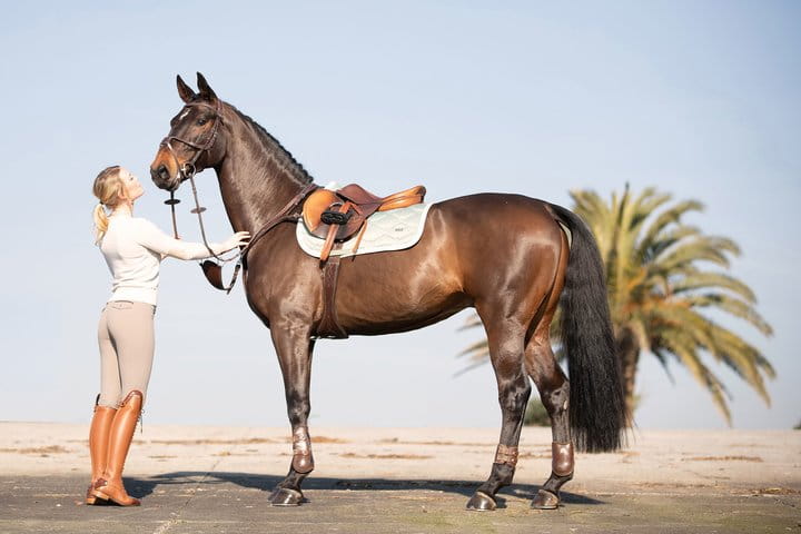 Czaprak ma anatomiczny kształt zapobiegający przesuwaniu się go podczas jazdy.