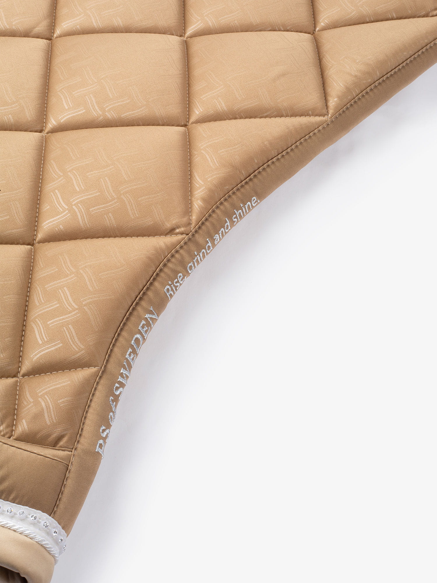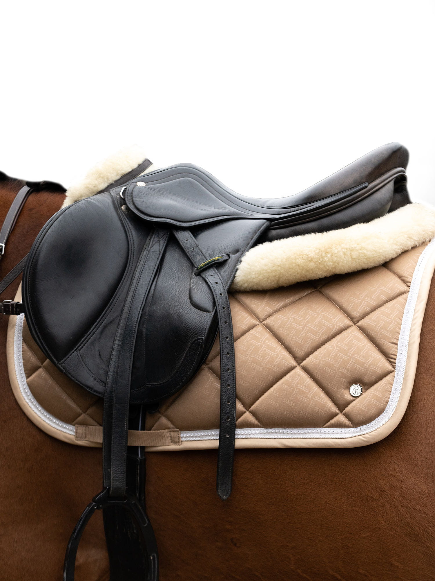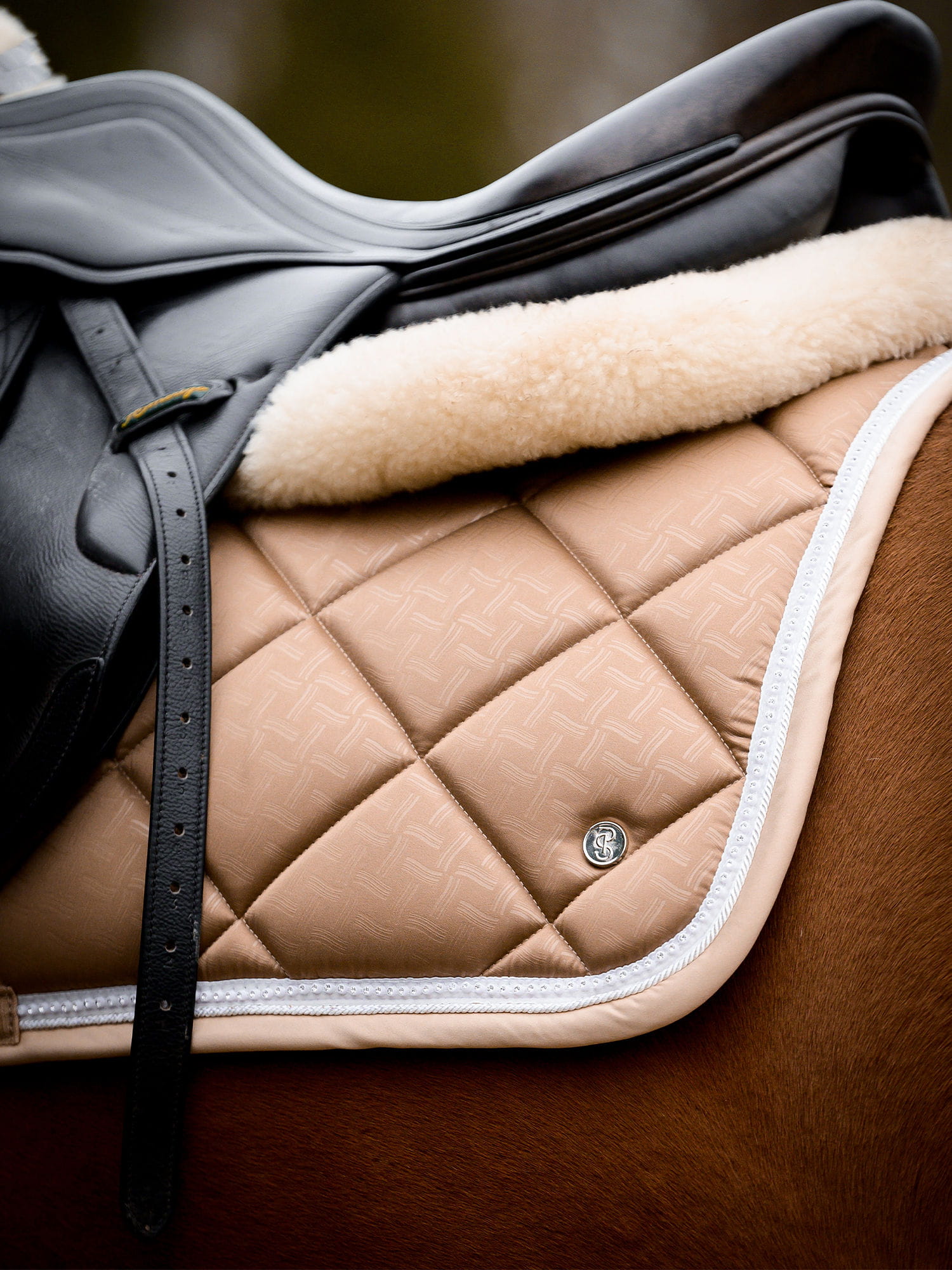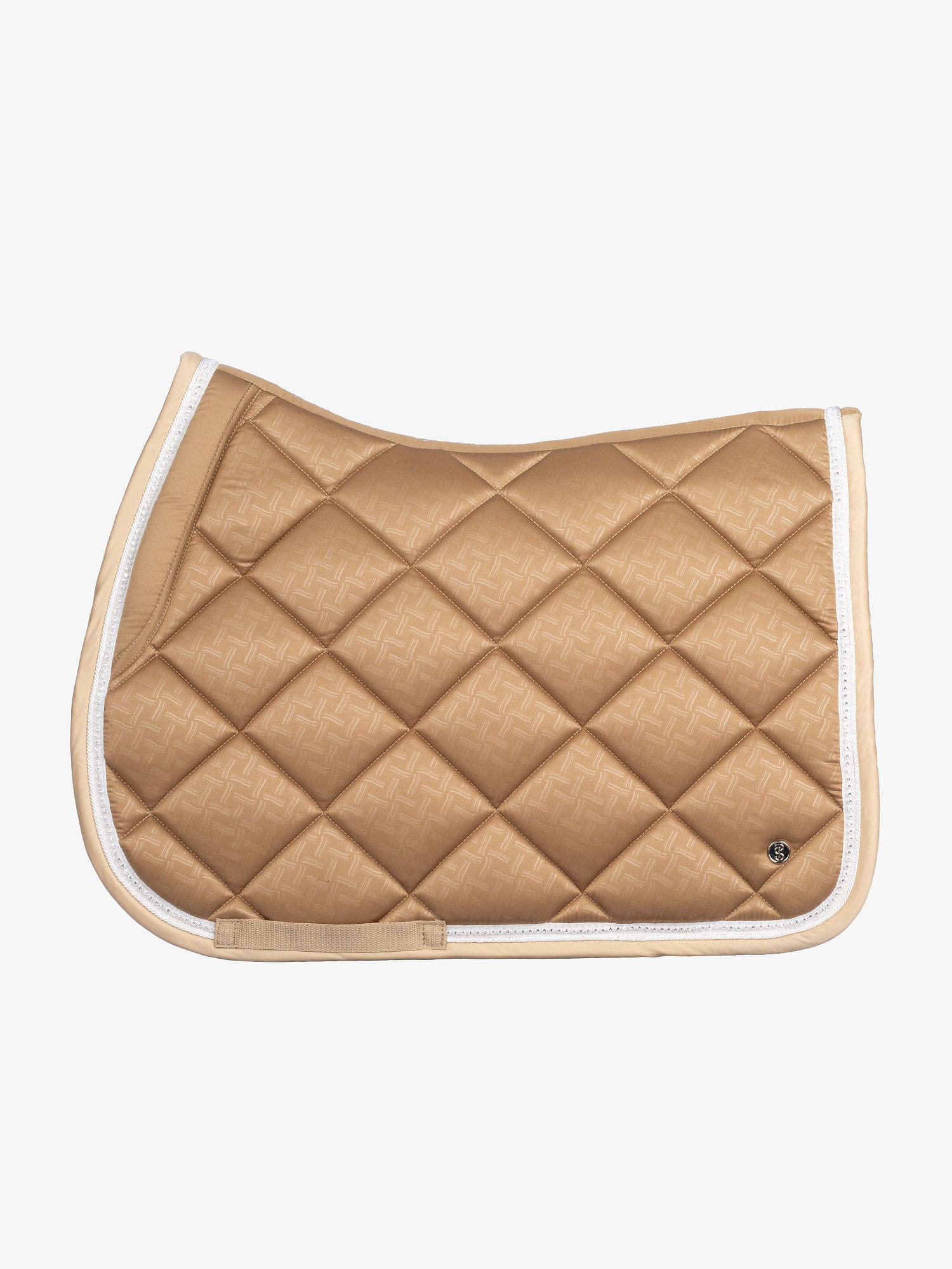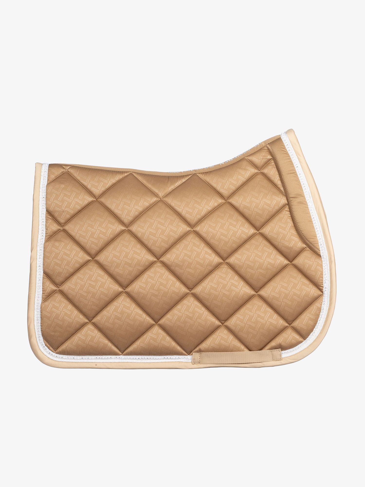 Anatomicznie ukształtowany czaprak z pięknymi kryształkami przy lamówce.