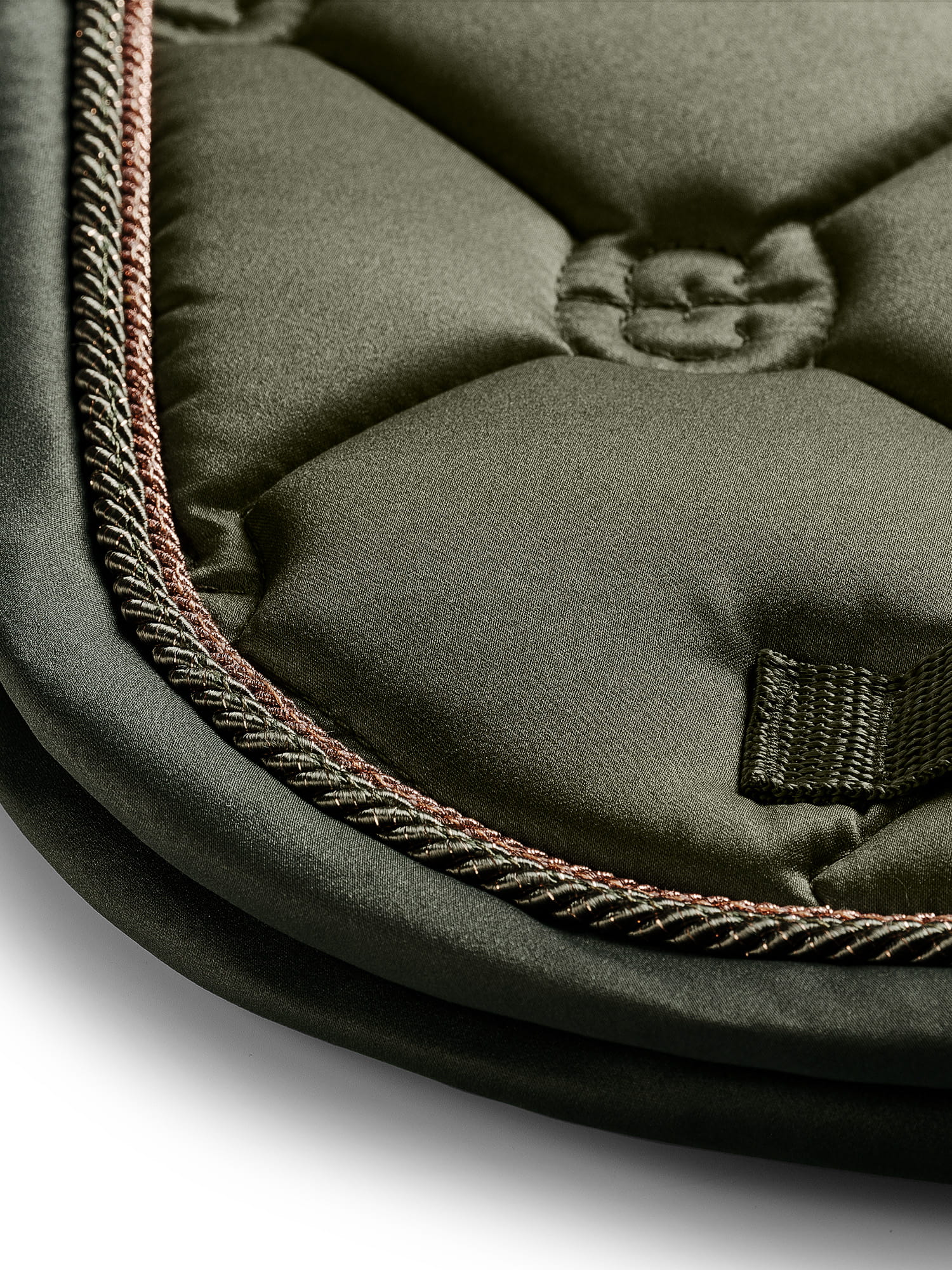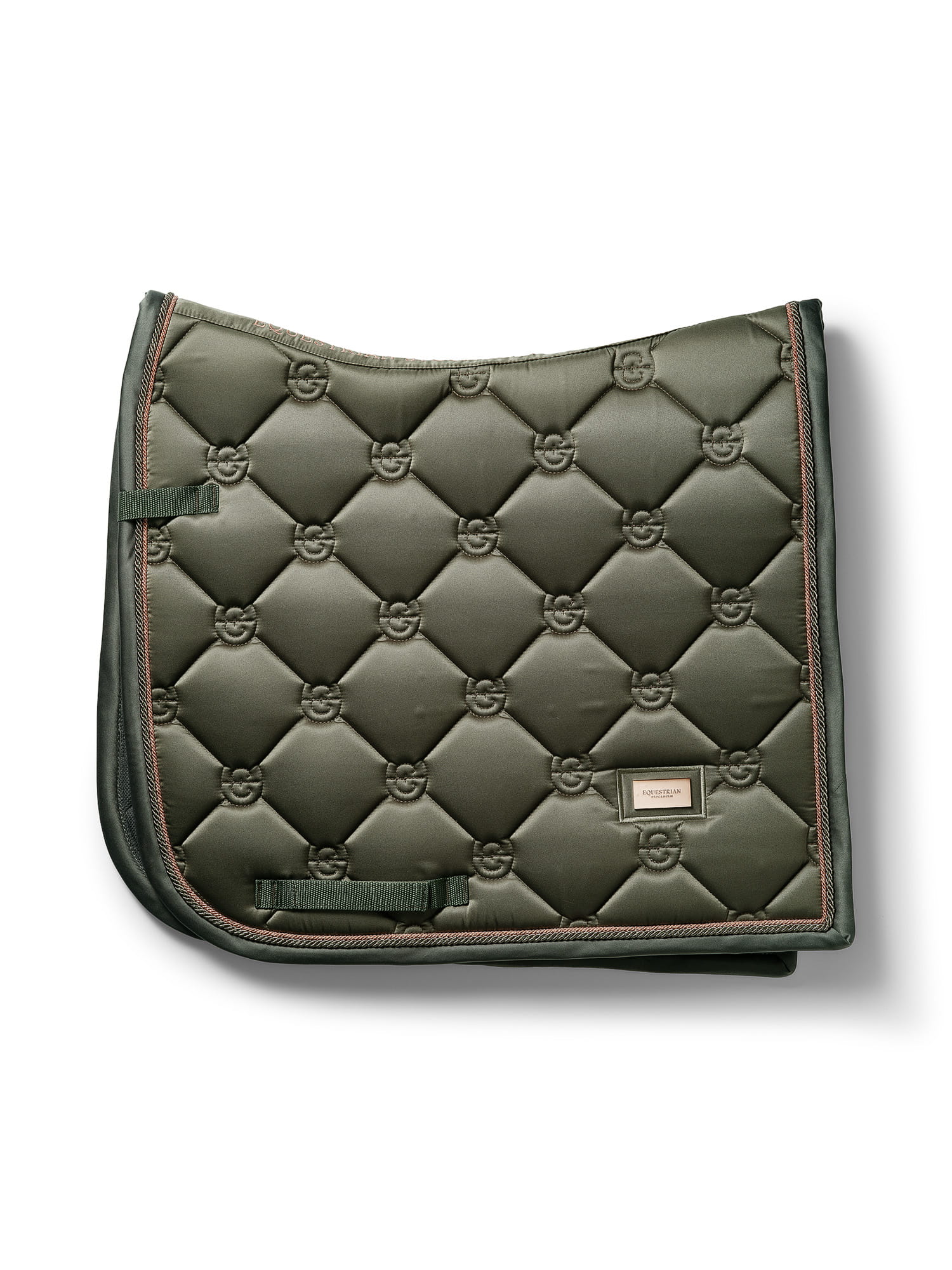 Piękny czaprak z klasycznym pikowaniem ES w kolorze oliwkowym. Ozdobiony stylową plakietką Equestrian Stockholm w kolorze rose gold. Wykonany z błyszczącego, odpornego na zabrudzenia materiału, który dobrze oddycha i sprawia, że Twój koń nie spoci się aż tak bardzo podczas treningu. Czaprak ma pikowanie z logo Equestrian Stockholm.