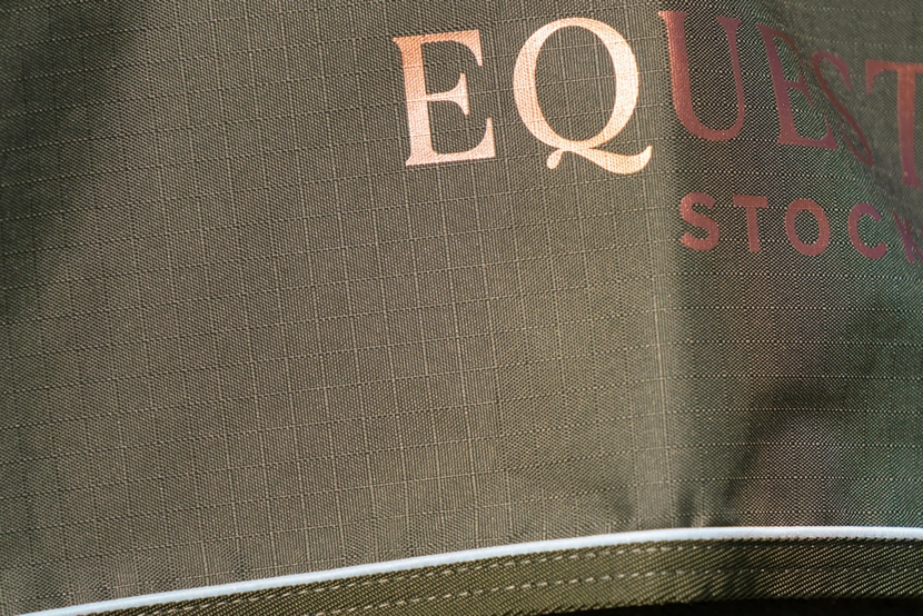 Luksusowy jasno zielony kolor jest połączony z detalami w kolorze rose gold, takimi jak nadrukowane różowozłote logo Equestrian Stockholm po lewej stronie. Przy krawędziach znajduje się pasek odbijający światło dla lepszej widoczności gdy jest ciemno.