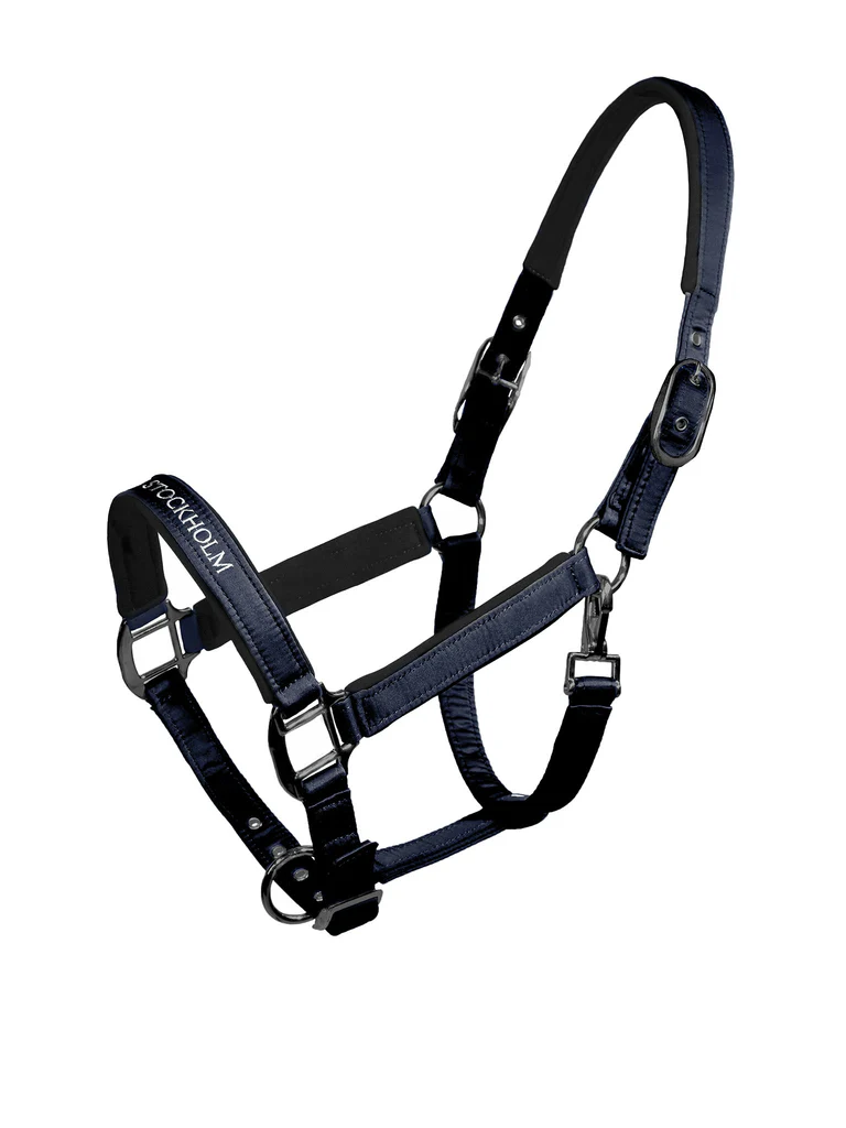 Granatowy kantar Line dla koni potrzebujących wytrzymałego kantara do codziennego użytku.