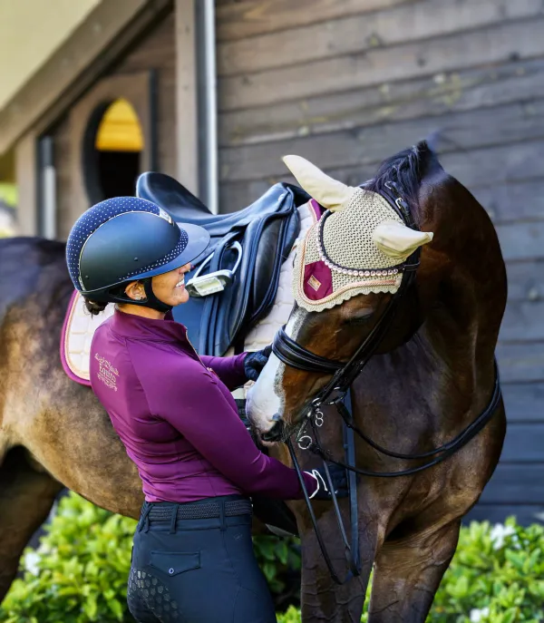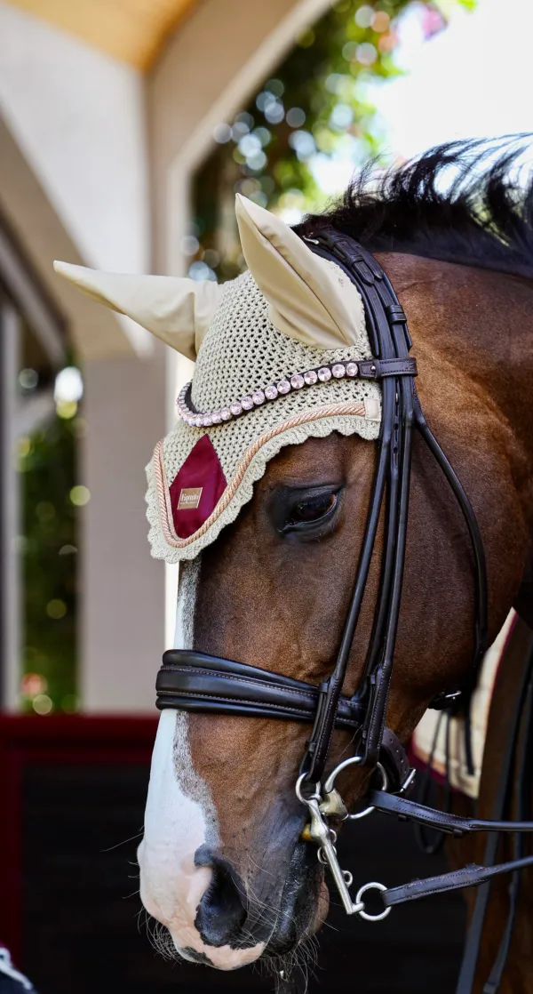 Ozdobione naszywką w kolorze rose gold, brokatową tasiemką i eleganckim sznurkiem.