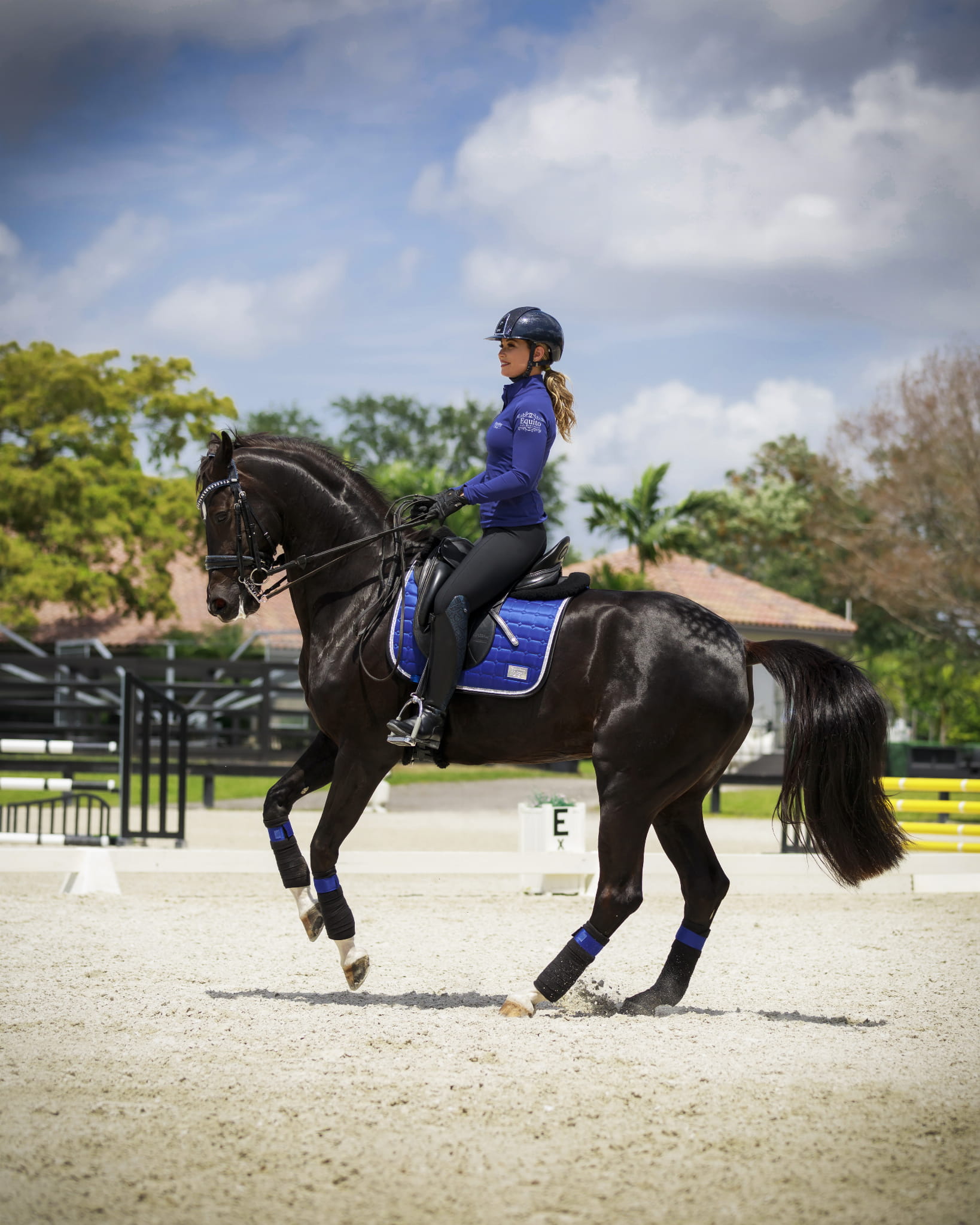 Ozdobione błyszczącym materiałem oraz gumową naszywką z logo Equito.