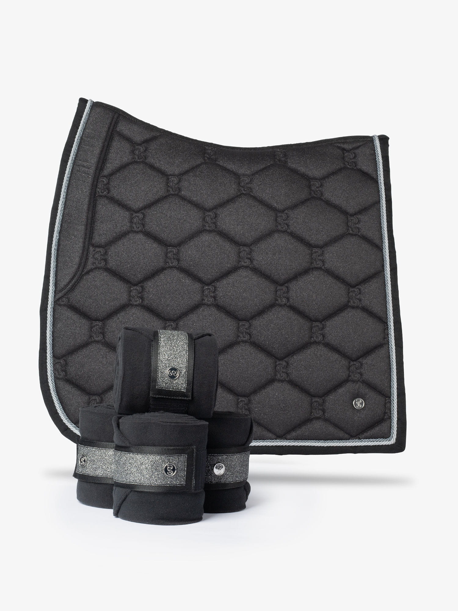 Te polarowe owijki dla koni mają wyjątkowy wygląd dzięki elementom z brokatem.