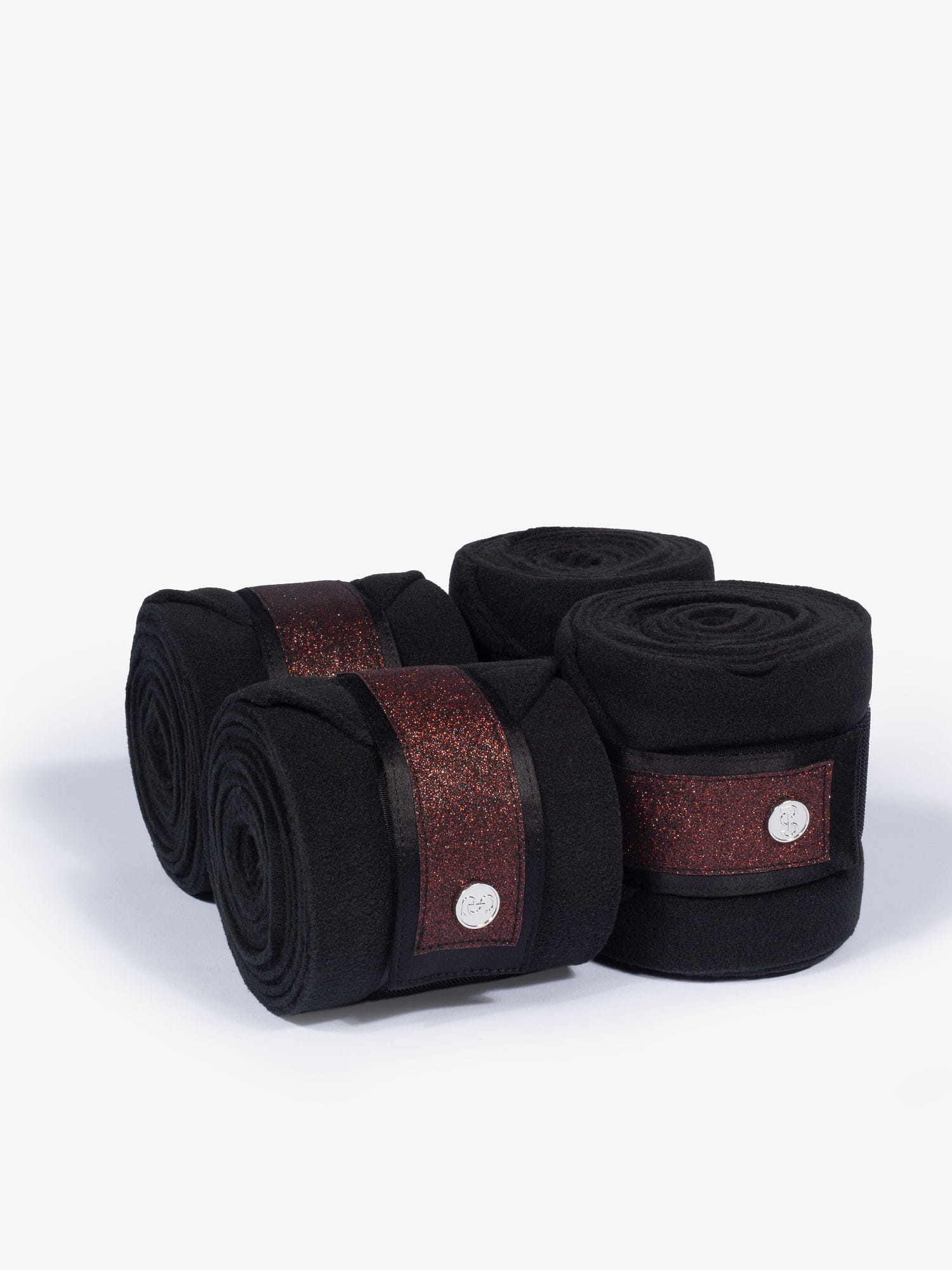 Te polarowe owijki dla koni mają wyjątkowy wygląd dzięki elementom z brokatem.