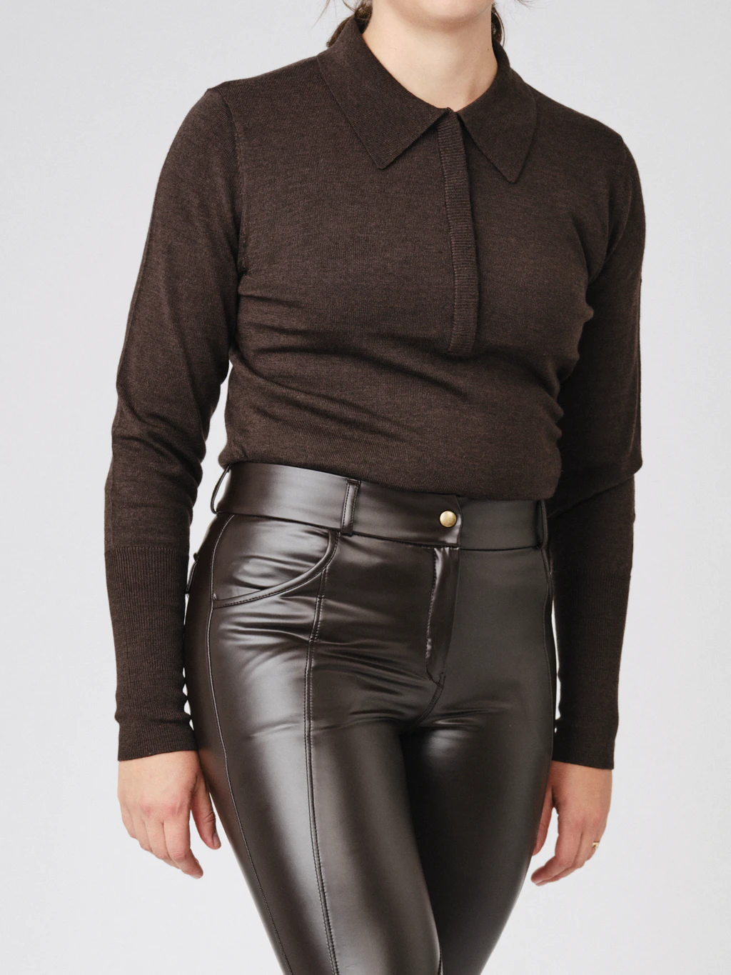 Hailey to niezbyt gruby, elegancki sweter z kołnierzykiem. Zapinany jest na zatrzaskowe guziki, które są ukryte. Dzięki temu można go dopasować do wielu stylizacji. Hailey ma dopasowany krój a także wyhaftowane logo PS of Sweden na lewym rękawie. Wykonany jest z odpowiedzialnie wyprodukowanej mieszanki wełny merynosów.